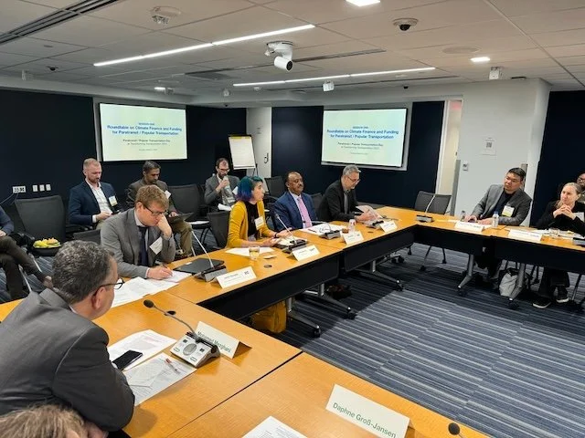 Roundtable participants included key leaders from: IADB, CAF, Climate Leaders Initiative, C40 Cities, BMZ, FCDO, Shell Foundation, TUMI, ADB, the EU Commission, AfDB, UITP, AFD, WRI, Mirova, ITF, ITFW, and USAID along with the co-organizers of Popular Transportation Day. (See below.)